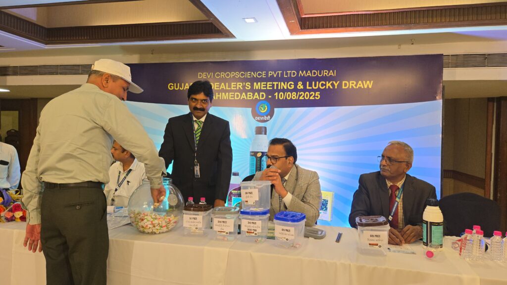 Ahmedabad, 10 August 2025 – The leading company in the agriculture sector, Devi CropScience Pvt. Ltd., organized a grand dealer meeting at Hotel Pride Plaza in Ahmedabad. A large number of dealers from Gujarat as well as various other regions were present, and the program was successfully completed in an enthusiastic atmosphere.
